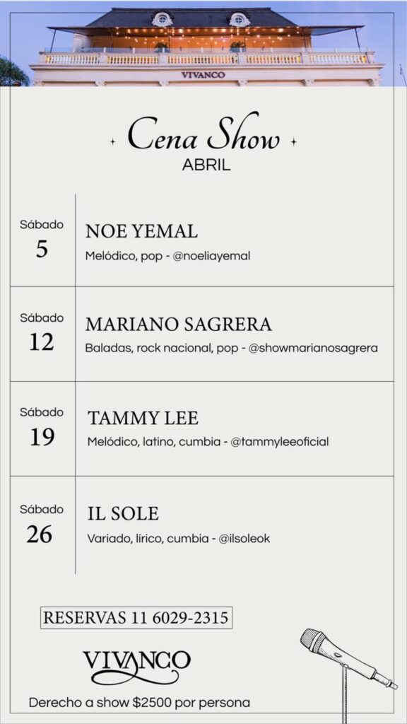 Almuerzos y cenas con shows musicales en vivo en Vivanco Restó.