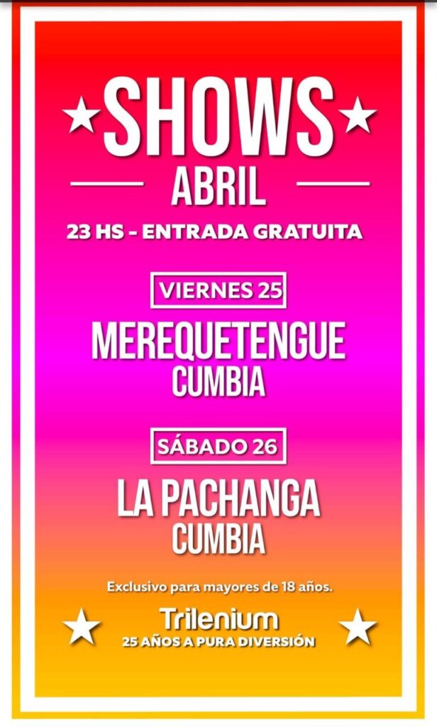 👉🏻Viernes 25/4 – 23 hs: Merequetengue, cumbia