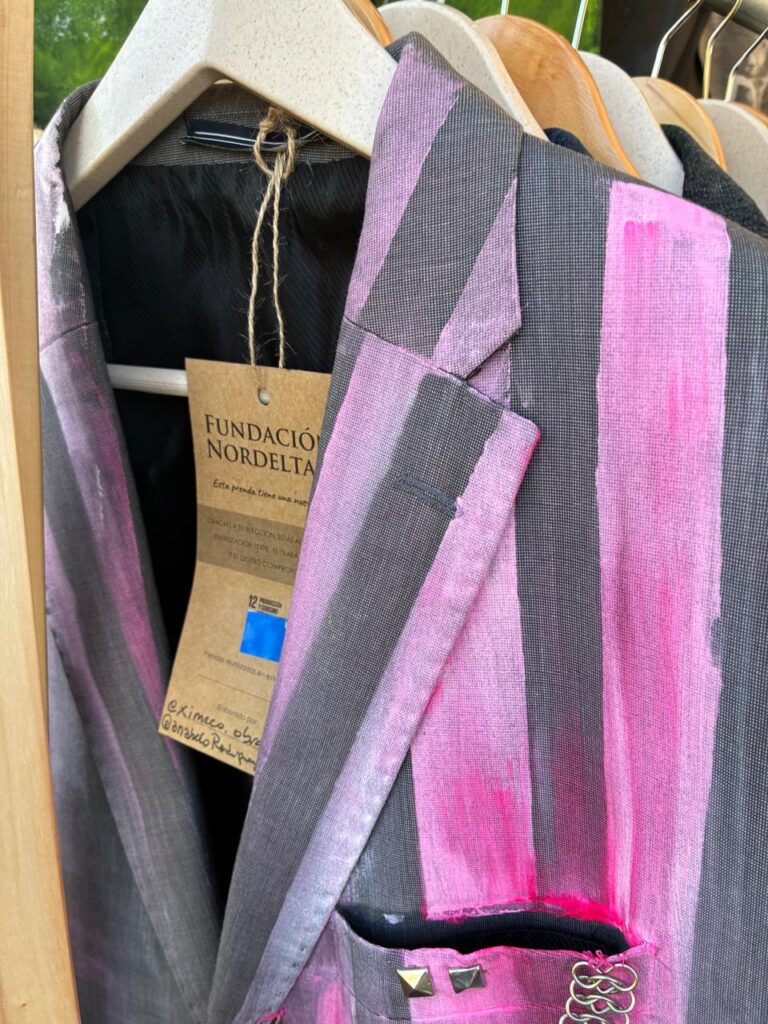 Además, destacó el valor del proyecto en términos sociales y ambientales: “Es por la causa. Nos pone muy contentas porque estamos haciendo lo que amamos y al servicio de la comunidad. Hoy hay algo problemático que es el tema de la ropa, dónde va a parar. Esto es hacer un upcycling y volver a darle vida a las prendas por medio del arte”.