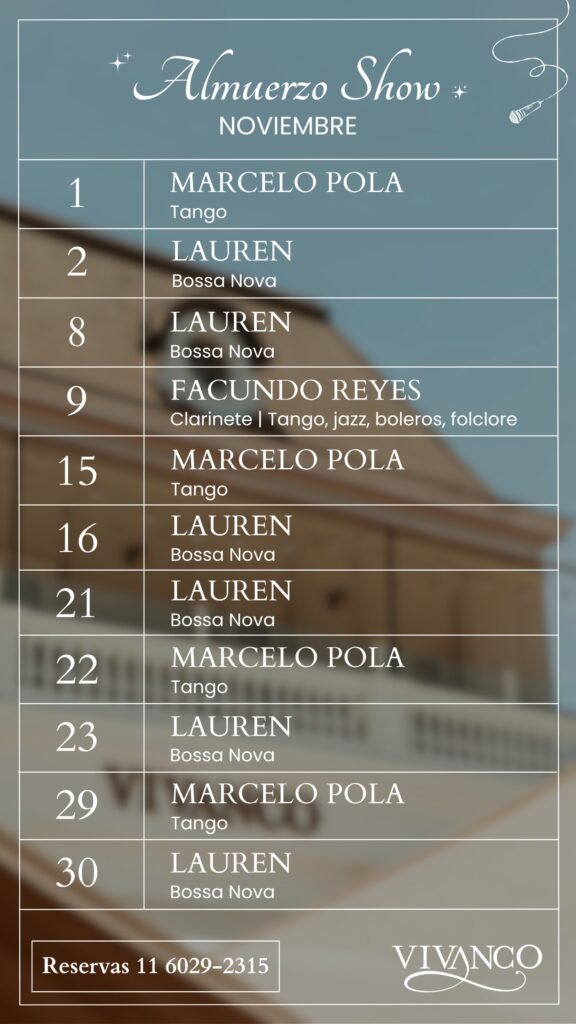 Almuerzos y cenas con shows musicales en vivo en Vivanco Restó.
