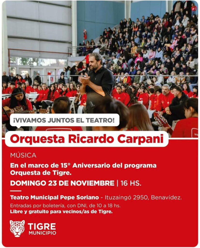 🐯Si sos vecino o vecina de Tigre podés acercarte a la boletería del teatro de 10 a 18 hs a retirar tu entrada libre y gratuita.