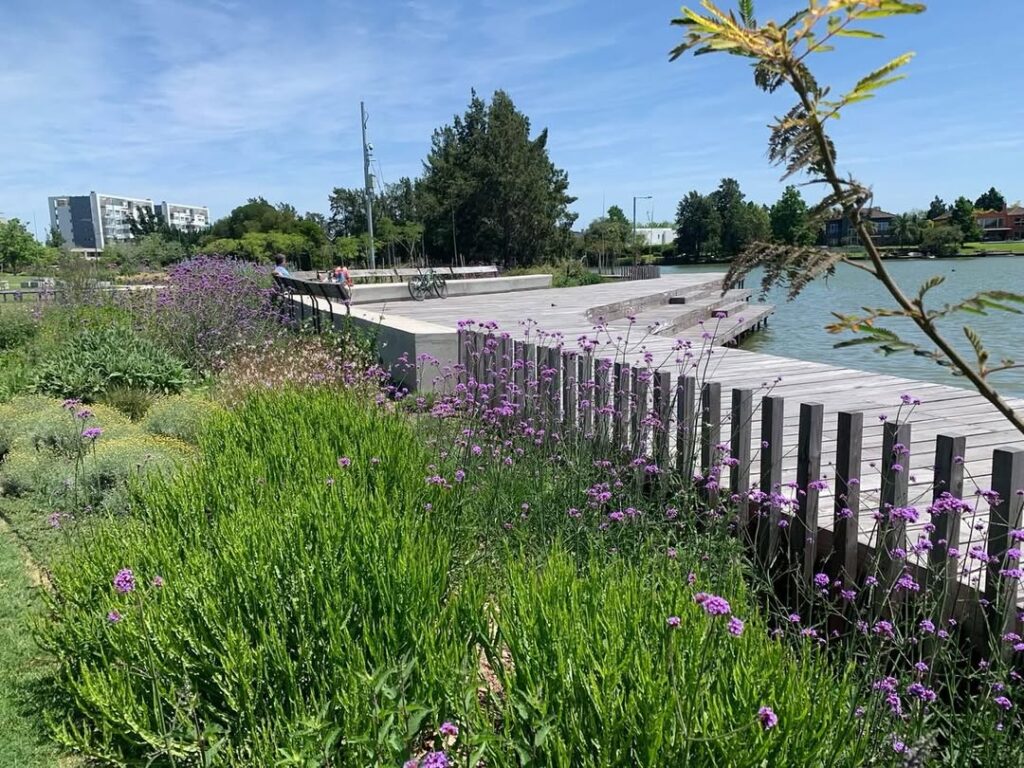 Ubicado entre los barrios La Isla y Los Puentes, frente a El Palmar, el parque Puerto Canoas se consolidó como un punto de encuentro al aire libre. Su diseño propone una conexión directa con el agua mediante un muelle escalonado y amplios sectores verdes que invitan al disfrute y la contemplación.