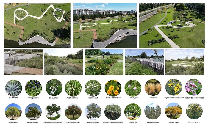 Las arquitectas explicaron que la estrategia de parquización tomó como referencia la identidad ecológica del delta bonaerense, priorizando el uso de especies nativas. En el predio se plantaron 160 árboles, además de bosquetes, arbustales y pastizales que recrean distintos ambientes naturales, favoreciendo la biodiversidad y la sombra.