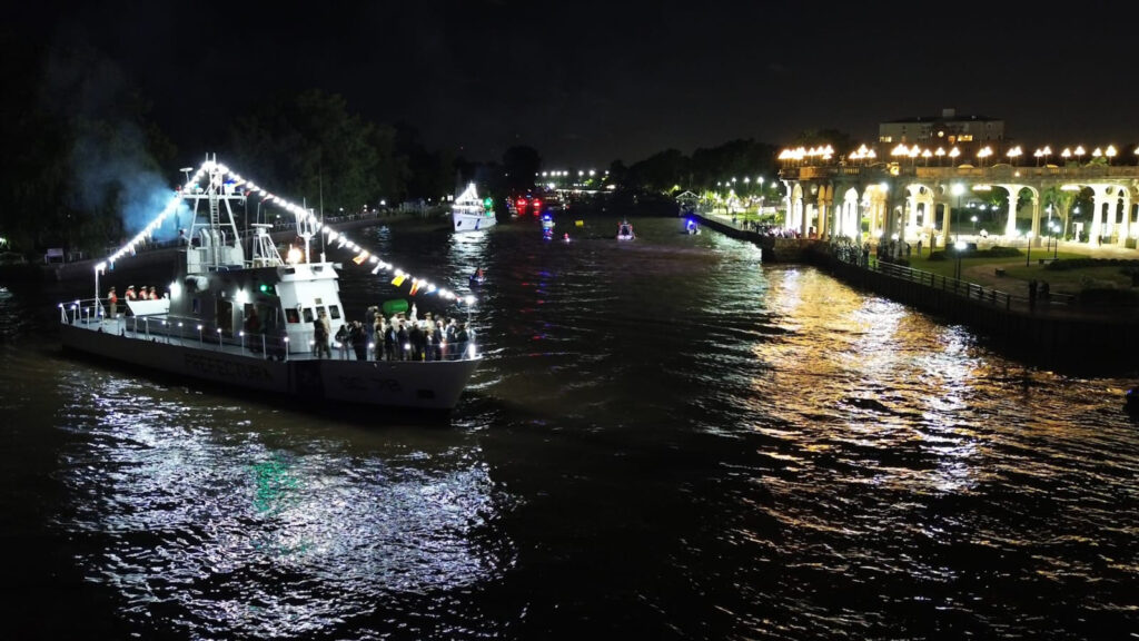 La procesión continuó con la tradicional caravana náutica, que partió desde el Puerto de Frutos hacia el Museo de Arte Tigre (MAT). La embarcación de la Prefectura Naval, que trasladó la imagen de la Virgen, fue acompañada por el intendente y autoridades locales, además de la comunidad que participó desde el río.